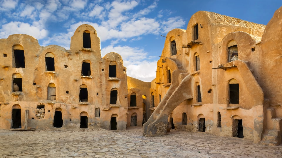 Just outside Teboursouk, Dougga offers a striking look at Roman life, with remarkably preserved ruins of theatres, temples and bathhouses. You might recognise Ksar Ouled Soltane from ‘Star Wars’, but this 15th-century Amazigh complex is fascinating on its own. A highlight of the Tunis medina, the Souk Ech-Chaouachine features lively cafes and shops selling ‘chechias’, traditional Tunisian hats.