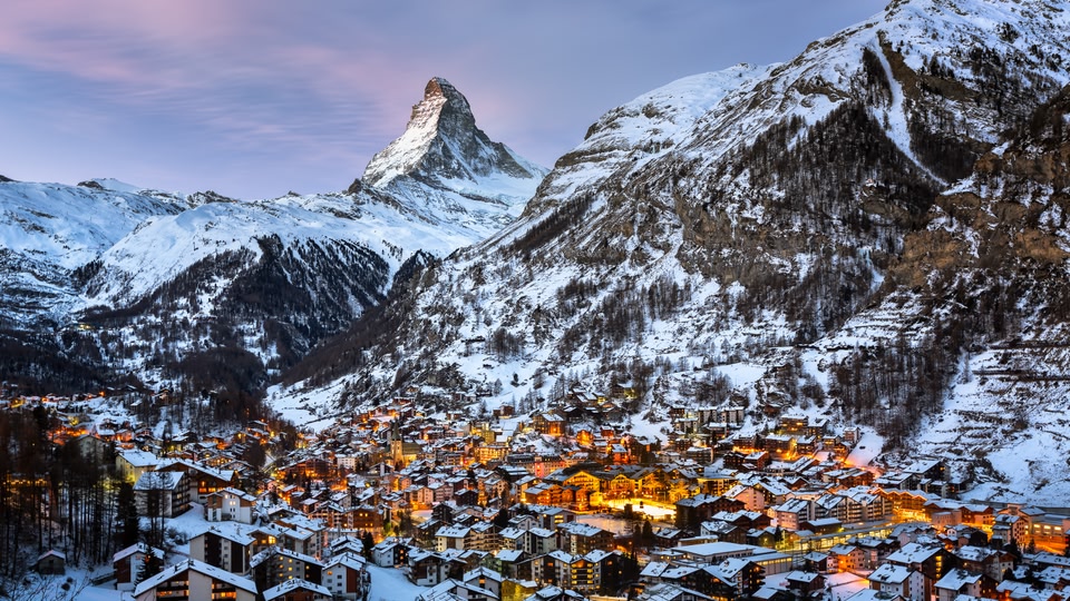 December – February: Winter in the mountains is cold and snowy, perfect for skiing and snowboarding. Cities stay milder, offering a cosy backdrop for daytime exploring and evenings spent enjoying warm fondue.