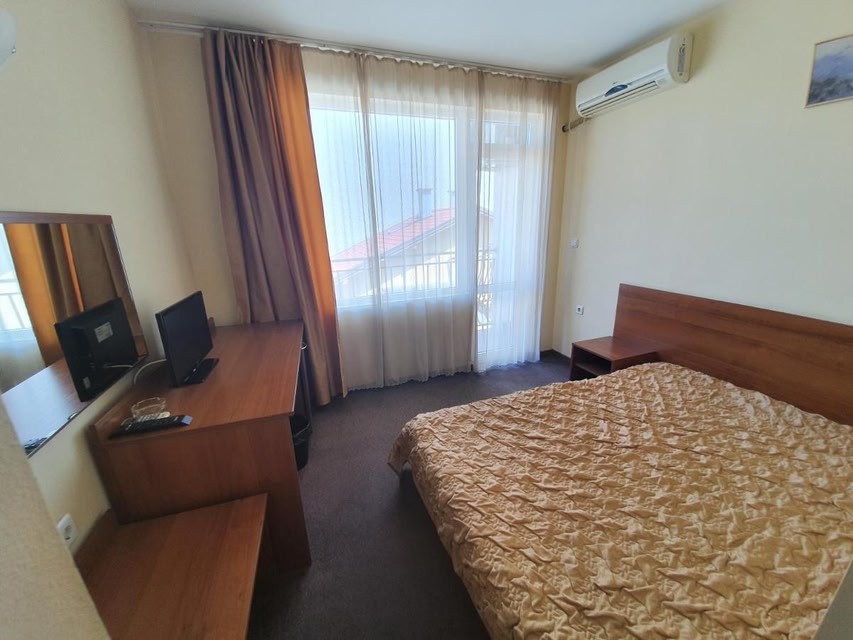 Location You’ll be sleeping tight! Hotel «Hotel Sandor» is located in Nesebar. This hotel is located in the center of the city. Before going to bed, you can walk around the main landmarks of the city. You can take a walk and explore the neighbourhood area of the hotel — Sand Fest Burgas, Park Veleka and Burgas Bridge.At the hotel For the free movement around the city, the hotel offers a transfer for you. Additional services that the hotel offers to its guests: ironing. The staff of the hotel will be happy to talk to you in English and Russian.Room amenities In the room, for you, there is a shower, a TV and a mini-bar. The room equipment depends on its category.