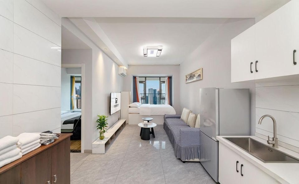 Luxury Hotel Apartment (Taikoo Li Chunxi Road) (Universal Hui Branch) is located in Chengdu East Railway Station Business District, only two stops away from Chengdu east railway station. Here you can enjoy the beautiful riverside scenery and bustling urban night scenery, enjoy the drunken bar nightlife in Lan Kwai Fong, and feel the century old cultural and historical charm of Hejiang Pavilion, Anshun corridor bridge, Shuijingfang, Daci Temple and so on. Nearby is the famous snack street with a history of 100 years, where you can taste authentic Chengdu cuisine. The perfect integration of fashion and classicality will enable you to enjoy the leisure and fashionable lifestyle in Chengdu. The downstairs of the apartment is Metro Line 8, with 4 stops to Chunxi Road, 6 stops to Tianfu Square and 8 stops to Kuanzhai alley. It can be said that the transportation is convenient and extends in all directions. With "home" as the design theme, the hotel brings you a warm home on your way. High quality guest room products and facilities, coupled with the meticulous and warm service of private housekeeper, bring you a healthy lifestyle of "nature, tranquility, warmth and simplicity". The guest rooms are equipped with comparable high-quality bedding, central air conditioning, a full set of bath supplies, high-speed optical fiber and full WiFi coverage. All rooms are equipped with drum washing machines and kitchen utensils, providing you with a comfortable and relaxed parking space. Here, being able to rest, recharge and relax is the only choice for travel and tourism. Looking forward to your home!