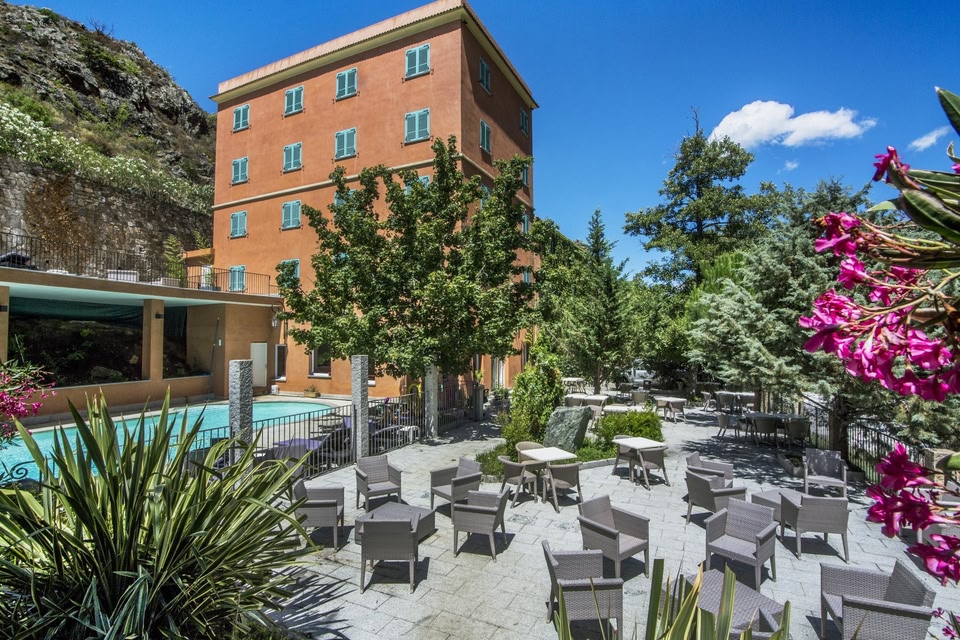 This hotel is located in Corte, near the Restonica River, which can be reached directly via the hotel garden. It offers an outdoor swimming pool and hot tub with deckchairs.