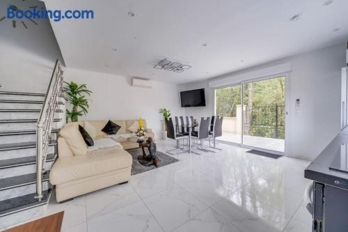 Featuring air-conditioned accommodation with a balcony, Maison chaleureuse et neuve 90m2 à 5min du centre de Libourne is set in Fronsac. This property offers access to a terrace, free private parking and free WiFi.