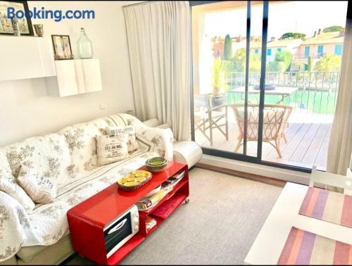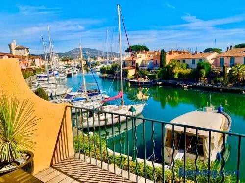 Located in Grimaud, 1.4 km from Port Grimaud Beach and 5.8 km from Chateau de Grimaud, Terrasse ensoleillée sur les canaux offers a garden and air conditioning. This beachfront property offers access to a balcony and free private parking.