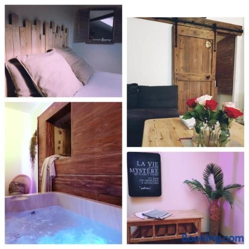 Featuring a sauna, Le Petit Secret d'Alban is located in Saint-Alban-de-Roche. Featuring a restaurant, the property also has a terrace, as well as a hot tub. Providing free WiFi throughout the property, the non-smoking holiday home features a sauna.