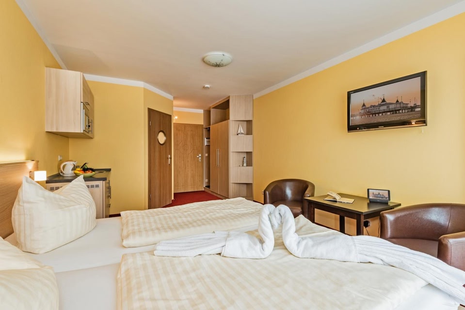 Stylish, modern rooms with flat-screen satellite TVs are featured at this family-run 3-star Superior hotel, just 100 metres to Ahlbeck’s sandy beach on the Baltic Sea Coast. It offers free Wi-Fi and rich breakfast buffets.