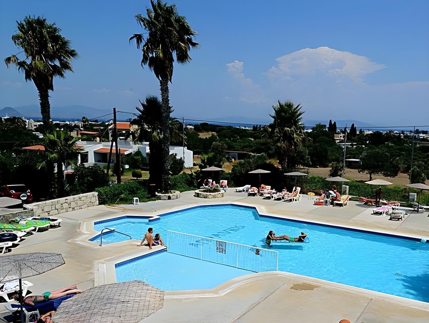 Gelli Apartments enjoys an elevated position with panoramic views of Kos Town, the surrounding mountains, the Aegean Sea, and Turkey. A 15-minute walk takes you to the town center, while the main port is a 25-minute stroll away. Hippocrates International Airport is 25 km from the property. Each apartment features a combination of double and single beds, a fully equipped kitchen with a dining area, air conditioning, complimentary Wi-Fi, and a private balcony. Private parking is available on-site, and the staff can assist with arranging rentals, island tours, and daily boat excursions. Guests are welcome to enjoy the on-site swimming pool and bar.