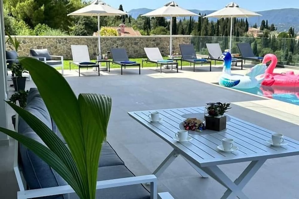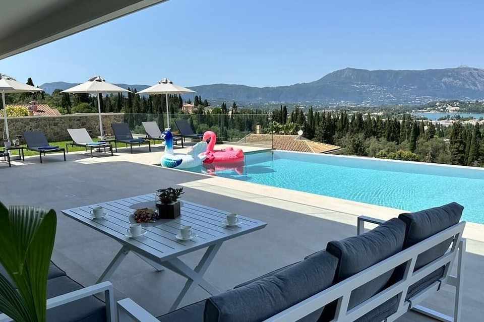 Featuring air-conditioned accommodation with a private pool, mountain view and a balcony, Villa Antonis is located in Corfu. With pool views, this accommodation features a patio.