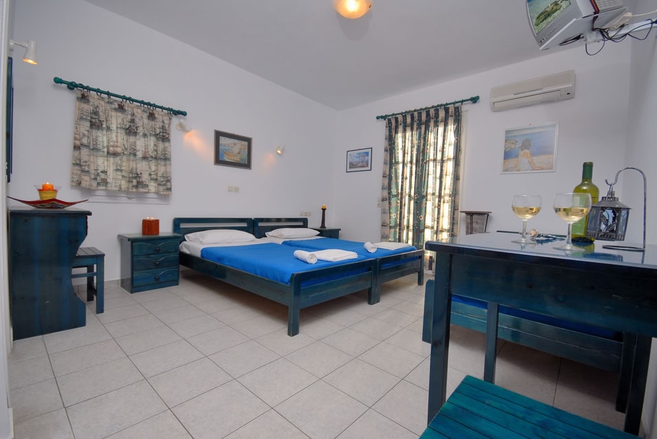 Georgia Mare is situated just 20 metres from the sandy beach of Agios Georgios. The centre of Naxos town is within 100 metres from the hotel. Georgia Mare rooms are bright and spacious and decorated according to the typical Cycladic style.
