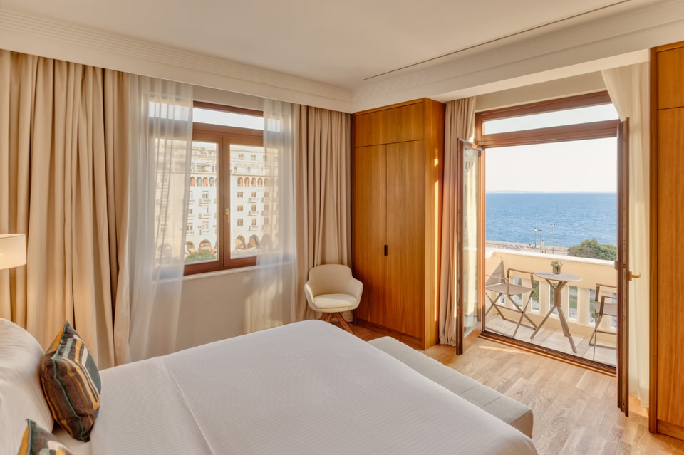 Electra Palace Thessaloniki is a 5-star flagship hotel in the heart of Thessaloniki, in the impressive Aristotelous Square. On the top floor is the Orizontes Roof Garden Restaurant Bar with panoramic views of the Thermaic Gulf.