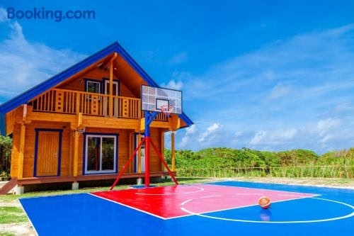 Boasting air-conditioned accommodation with a balcony, レジーナ石垣ログテリアⅡ is situated in Hirakubo. This holiday home features a private pool, a garden, barbecue facilities, free WiFi and free private parking.