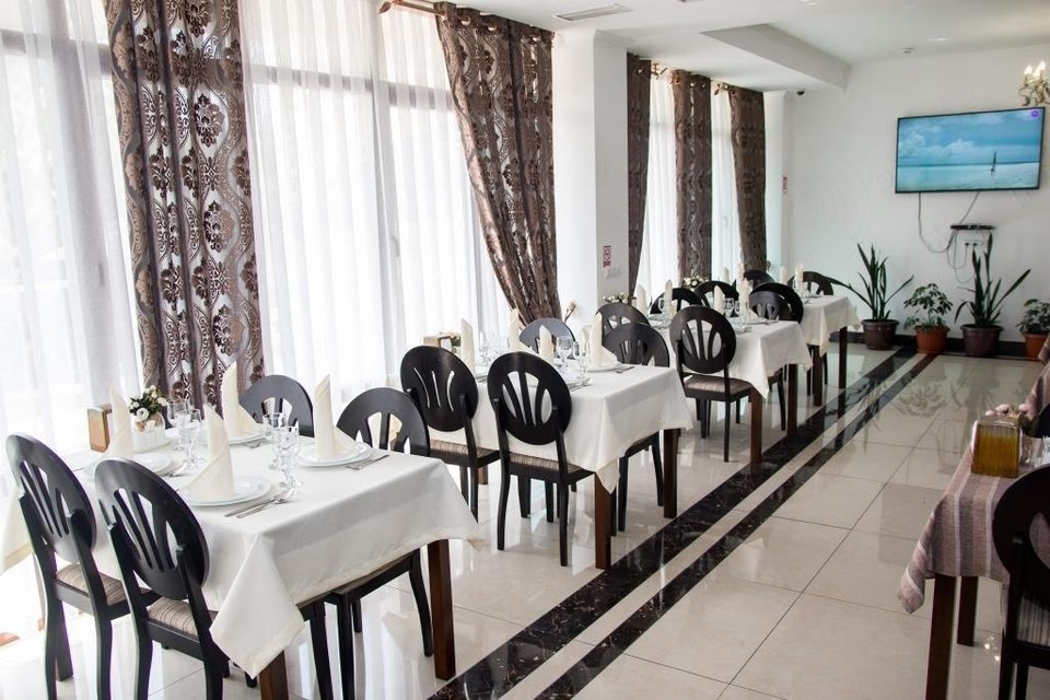 Location A great place to have a rest after an exciting day! Hotel «SunRise Osh Hotel» is located in Osh. This hotel is located in the center of the city. Before going to bed, you can walk around the main landmarks of the city.At the hotel Spend an evening in a nice atmosphere of the bar. You can stop by the restaurant. Have a cup of coffee in the cafe and, who knows, maybe it’s going to be the best one in the city. Want to be always on-line? Wi-Fi is available. If you travel by car, there’s a parking zone. Sports fans will be able to enjoy a table tennis area. Here, you can treat yourself with water procedures as there will be an outdoor pool. The tour assistance desk of the hotel will help you book an excursion. The staff of the hotel will order a transfer for you. Accessible for guests with disabilities: the elevator helps them to go to the highest floors. At the guests’ disposal, there’s also a laundry, private check-in and check-out and ironing. The staff of the hotel speaks English, German and Russian.Room amenities In the room, there is a TV, a mini-bar and a bathrobe. Please note that the listed services may not be available in all the rooms.