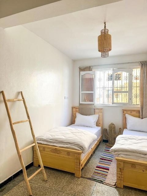 Single bed - Cozy dormitory - Surf territory is located on the beachfront in Agadir, a few steps from Anza Beach and 2.8 miles from Agadir port. The property is around 3.8 miles from Marina Agadir, 4.5 miles from Agadir Oufella Ruins and 5.1 miles from Amazighe Heritage Museum. The property provides a shared kitchen and a shared lounge for guests. At the hostel, rooms contain a desk and a flat-screen TV. Each room includes a shared bathroom and a shower, and certain rooms at Single bed - Cozy dormitory - Surf territory have a safety deposit box. Guest rooms will provide guests with a fridge. Guests at the accommodation can enjoy a halal breakfast. Golf Tazegzout is 7.3 miles from Single bed - Cozy dormitory - Surf territory, while Medina Polizzi is 7.7 miles from the property. Agadir–Al Massira Airport is 17 miles away, and the property offers a paid airport shuttle service.