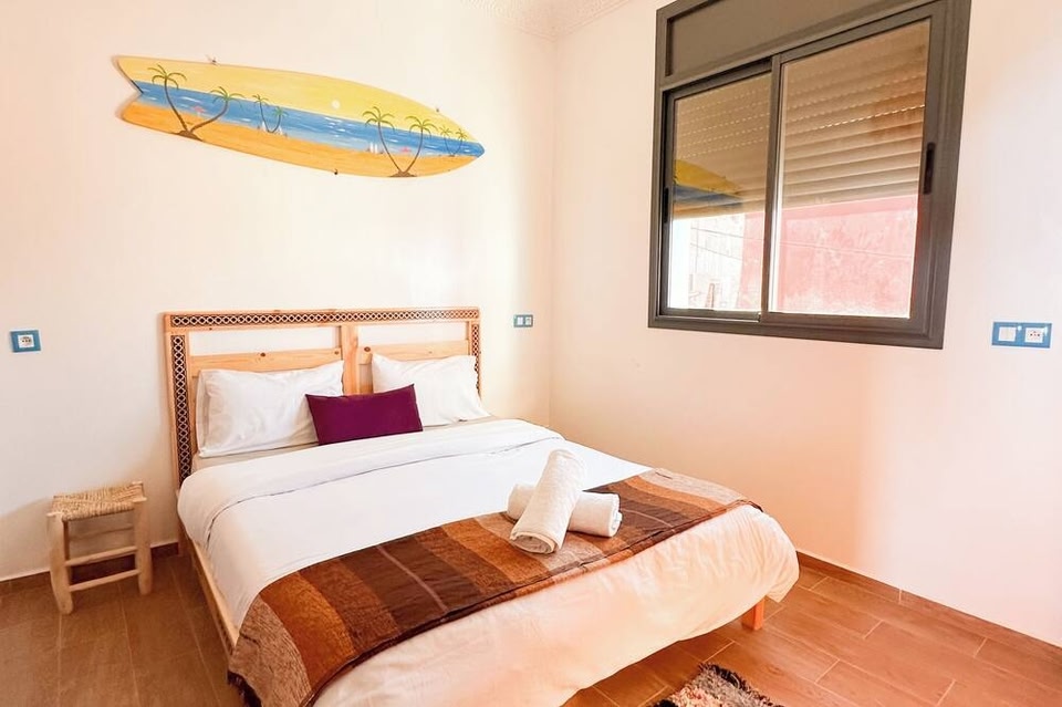 Blue Pearl Surf & Yoga House has a garden, shared lounge, a terrace and restaurant in Tamraght Oufella. Located around 1.8 km from Banana Point, the inn with free WiFi is also 3.9 km away from Golf Tazegzout.