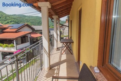 Apartmaji Tinta has mountain views, free WiFi and free private parking, situated in Kanal. The property features inner courtyard and quiet street views. The property features a children's playground and outdoor furniture.