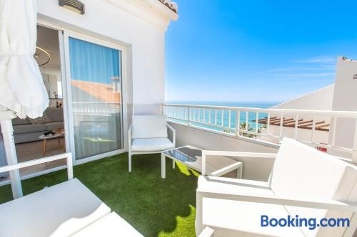 In the heart of Nerja, set within a short distance of Torrecilla Beach, Luxury Sea view Apartment offers free WiFi, air conditioning and household amenities such as a dishwasher and coffee machine. This beachfront property offers access to a balcony.