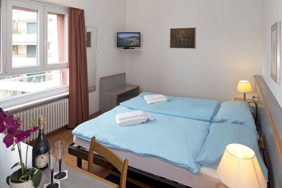 Hotel Garni in front of the train and bus station of Locarno and Centovallina station, 5 minutes walk from the lake and from the central Locarno Piazza Grande.