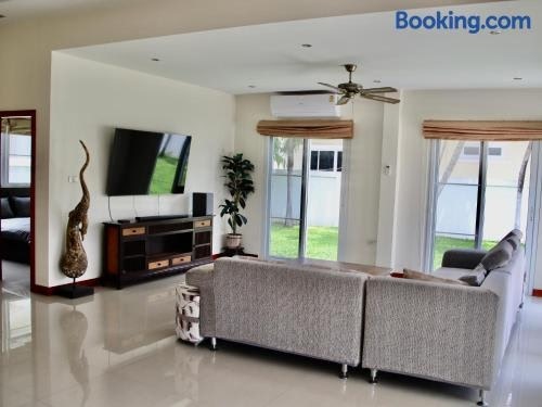 Featuring air-conditioned accommodation with a private pool, Beautiful 2 bedroom villa with a dedicated office is located in Hua Hin. There is an on-site restaurant, plus free private parking and free WiFi are available.