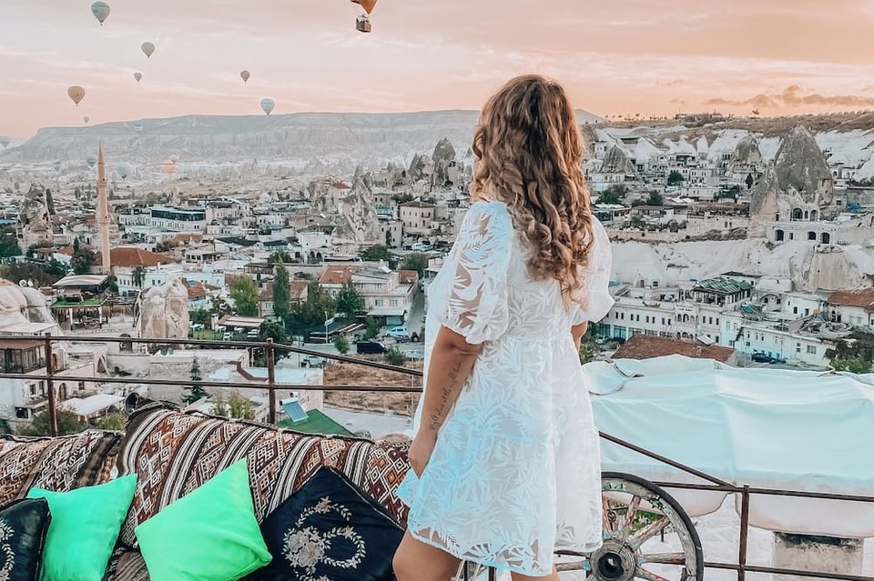 Located on a hilltop of Goreme, Traveller's Cave Hotel features many terraces with views of Cappadocia. Guests can watch the sunrise, sunset, the hot air balloons floating over Cappadocia and the fairy chimneys.