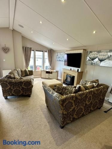 Situated in North Seaton and only 1.5 km from Newbiggin Beach, Deluxe Lodge on Holiday Park Site features accommodation with sea views, free WiFi and free private parking. Guests can benefit from a balcony and a terrace.
